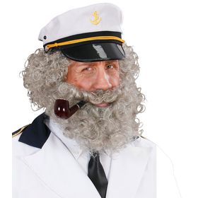 Cette barbe et cette moustache de marin pour homme sont de couleur gris clair et s'attache à l'aide d'un élastique (Seules la barbe et la moustache sont incluses).
